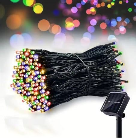 El panel solar de alta eficiencia captura la energía solar durante el día, almacenándola en la batería integrada de 1200mAh. Al anochecer, el sensor inteligente activa automáticamente las 100 luces LED multicolor, que iluminan toda la noche sin intervención humana. El sistema optimiza el consumo energético para maximizar el tiempo de funcionamiento incluso en días parcialmente nublados, garantizando que tus decoraciones brillen noche tras noche sin fallos ni costos adicionales.